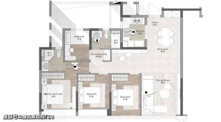 应对市场相同面积段下的产品,我们利用对封闭阳台等的计容规则变化,挖掘和提升户型产品的功能潜力,在满足置业者刚性需求的前提之下,试图提供空间多样性组合的可能,也因此赋予户型多样的居住性格。