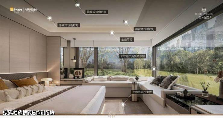高层住宅区采用整体抬升设计,拥有着独树一帜的瞰景视野,可谓“栋栋王座、户户揽云”。纵享IMAX级视野与园林风光,凭栏远眺,园景交辉。