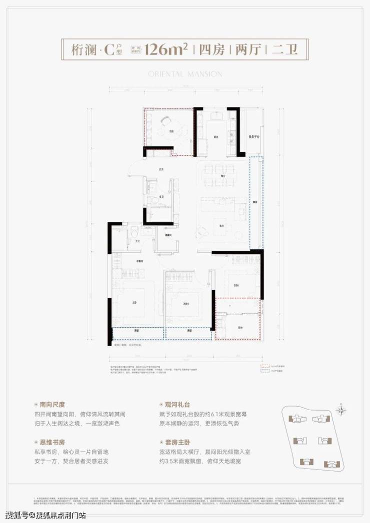 建面约126方4房2卫,270°稀缺边套四房
