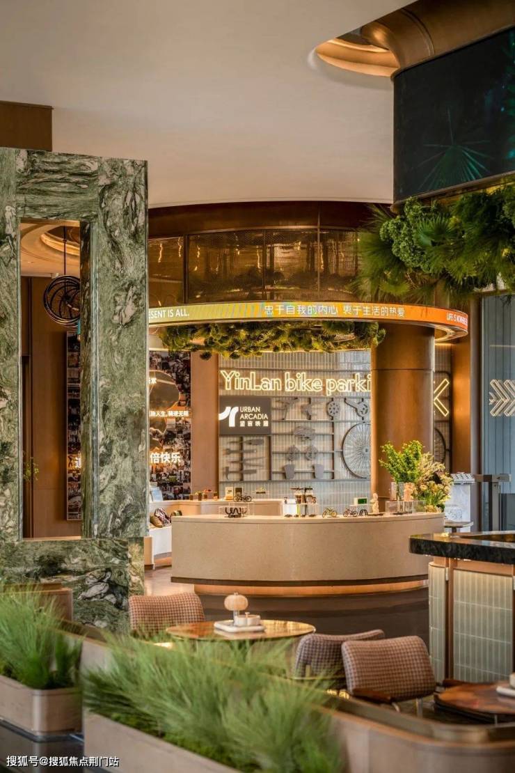 它的大门用上了贝金米黄和孔雀开屏奢石,搭配超尺的环岛落客区、对立两侧的铁冬青,一眼就贵气逼人。