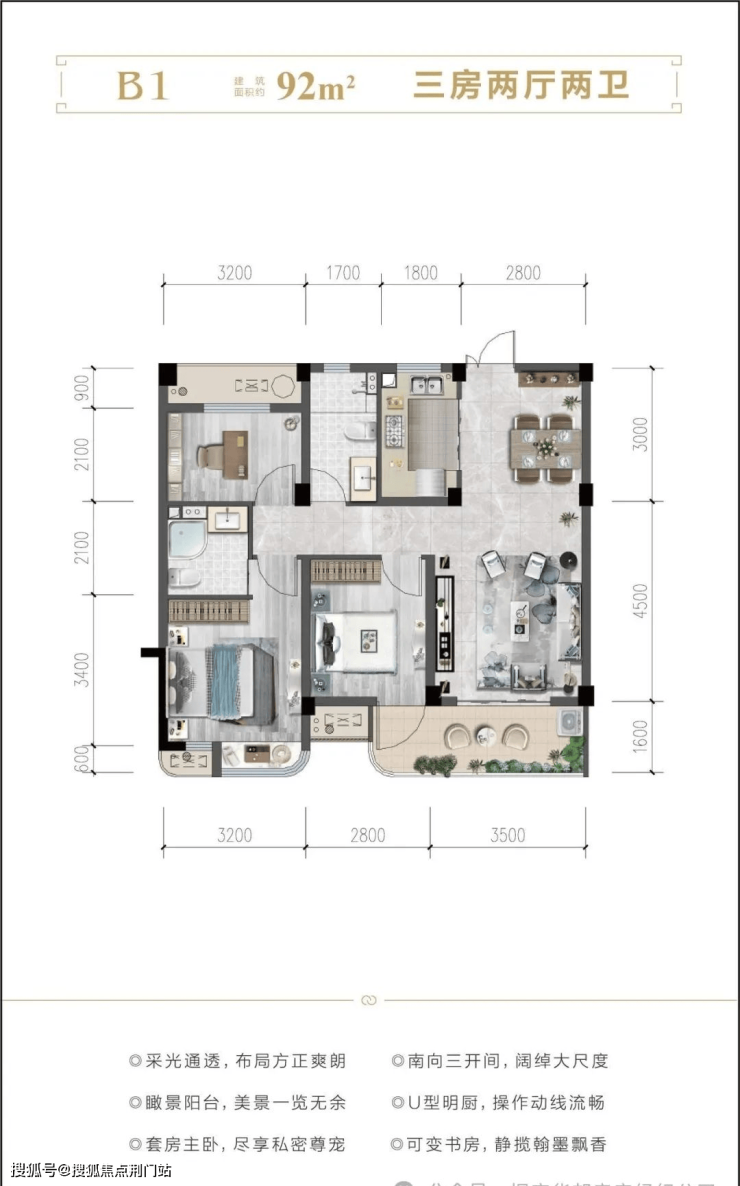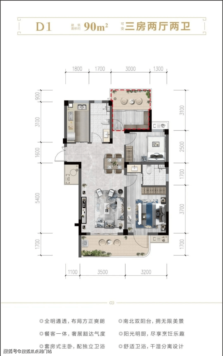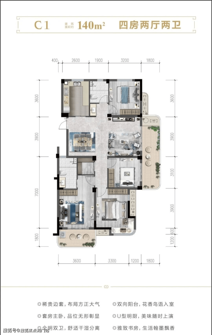 🌟户型细节:瞰景阳台的转角皆优化为圆弧形设计,不仅体现了柔和的美感、也进一步提升了产品独特品质感。