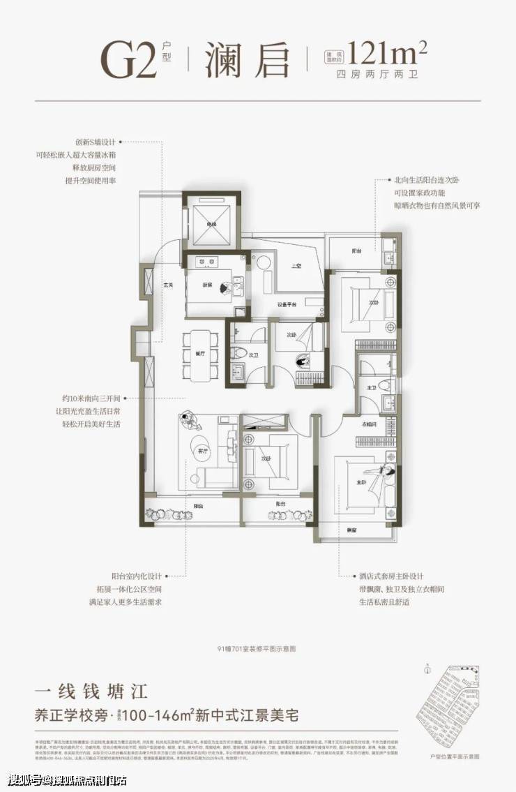 云启钱湾高层分为4种类型,建面约100㎡和建面约121㎡户型,做了创新S墙设计,提高了空间利用率,对年轻家庭来说,也是非常友好的。建面约146㎡四房户型,全部南向面江,大部分楼层还可看到一线江景。