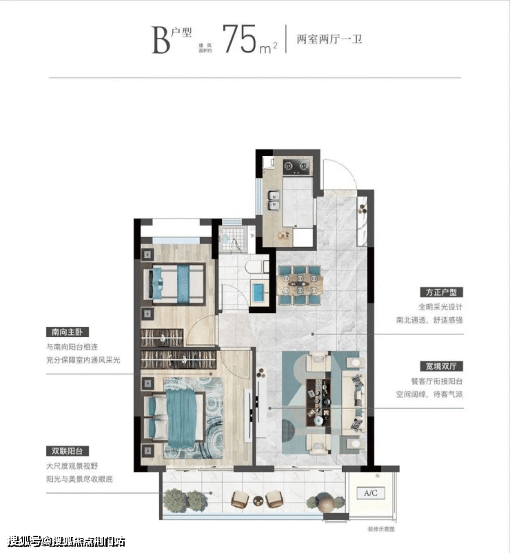 在售户型:41、75㎡(2梯6户)