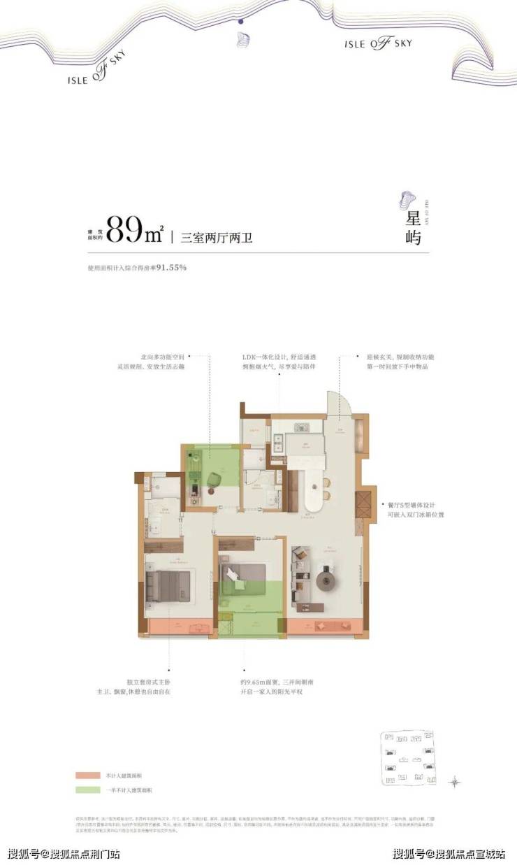 户型上,宣告了后限价时代杭州主城区第一个89方户型的回归,同时最大得房率约100%,突破传统尺度局限。