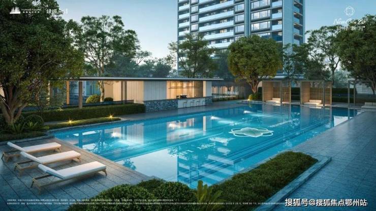 在中央设置了度假泳池综合区,规划泳池吧台、卡座等多个功能区,旁边还设计了颇富江南韵味的阳光水院和临水廊亭,且无界联通健身区、童趣乐园、长者花园等主题空间,营造步移景异的多重园境,下楼就能拥有度假酒店的松弛氛围。