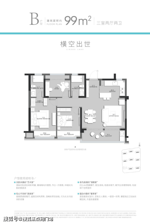 总价239万元建面约99㎡装标3000元/㎡,配置包含全屋中央空调、新风系统等。小区体量不大,规划9栋高层,共918户,主力户型建面有99-121方,及少量160方顶楼房源。锦上云澜建筑外观以城市封面标准设计,配置的是双色铝板外立面,同级豪宅品质。