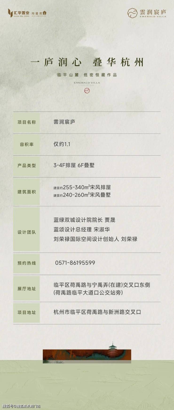 1.本项目开发商:杭州汇华云筑置业有限公司;推广名:汇华·雲润宸庐;备案名:云润宸庐。