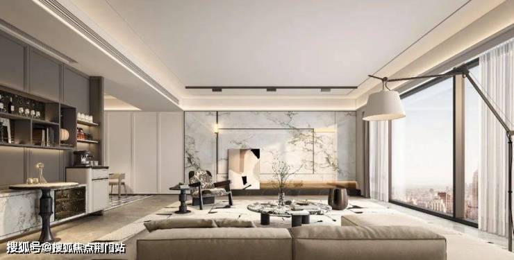 客厅、餐厅、厨房、阳台等,是家庭社交发生的载体,打破公区间的隔阂,形成通透完整的空间已经是当下品质住宅的标配。围绕着完整公区,我们试图植入更多的场景模块和动线模式,实现家庭关系从"物理共存"到"情感共融"的进化跃迁。