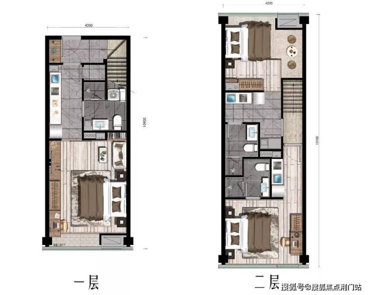开间约4.2米,楼上楼下动静分离。楼下是厨房、卫生间和餐客厅。楼上放得下1.8米的大床,淋浴房更有1.6×0.85米。虽不算大房子,但也“有很大的落地窗户,只需百万起就能拥有。