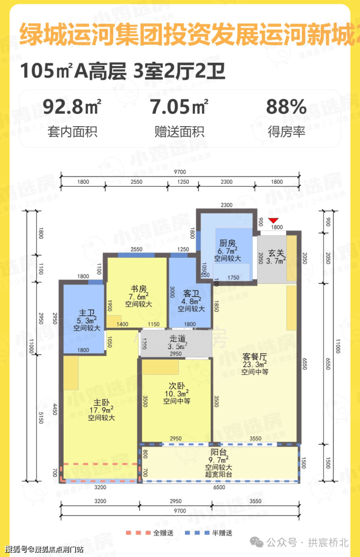 项目的面积分别约105-108-118-128-139方,精装限均价3.37万/㎡。房源层高约3米,架空层层高4.2米。