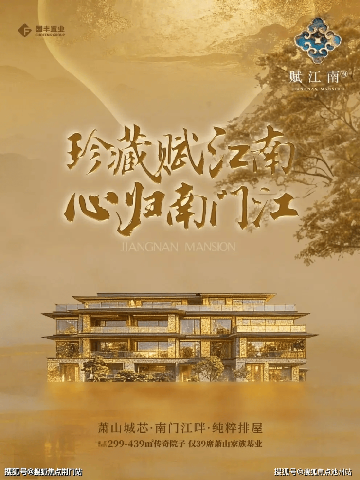 杭州萧山老城芯,作为城市人文根脉与价值高地,汇聚千年底蕴、全维繁华与生态水脉,是高端改善、家族置业的终极向往。杭州国丰赋江南府【官方认证】,由国丰置业匠心筑造,30 年萧山本土深耕,秉持精工传世理念与特级建筑资质,占位萧山老城芯南门江畔,以 “官方背书、萧山芯位、纯低密合院、东方美学、滨水生态、全维奢配、家族尺度” 七大核心优势,打造现代东方纯低密合院藏品,融合江南诗意与顶奢人居,彰显传世居住质感。项目规划 39 幢 4 层纯合院,主力建面约 299-439㎡家族大宅,严格遵循官方规划标准打造,是萧山老城芯稀缺低密孤品、顶序改善标杆。