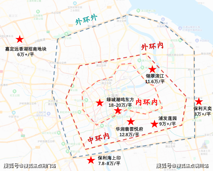 上海部分新房项目分布和预计价格示意图,供参考