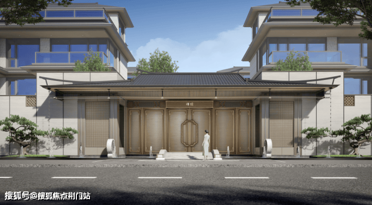 久映颂月府效果图,门前的景墙、旱桥和抱鼓石均为汉白玉