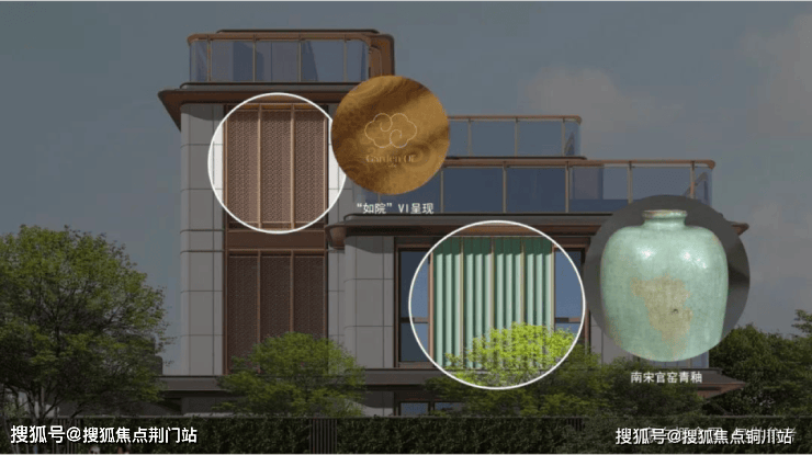 将故宫博物院收藏的《四季山水图》避风䈋装饰构件提炼出来,镶嵌在立面上,完美展示古典张力和现代艺术气质。