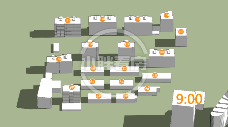 冬季:9#采光优异几乎不存在遮挡。18#中低层受遮挡。就具体遮挡时间而言,18#主要在上午受12#遮挡。