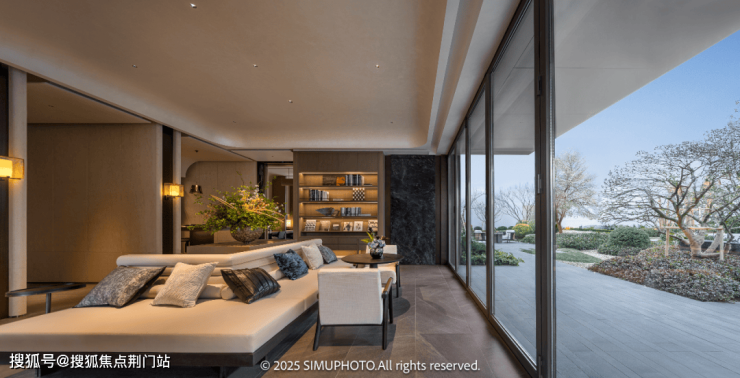 穿过大门,迎面而来的是拥有整幅落地玻璃的回家大堂“遇沐”,这里,曾于效果图中屡见不鲜的“足立美术馆”此刻犹如一幅徐徐展开的画卷,美不胜收地展现在眼前。