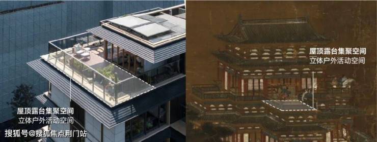 在风格层面之外,我们也探索传统宋韵的意象意境与现代生活场景之间的对话关系。基于宋画的构图分解和意象、意境再现,以及对其人文精神的挖掘,通过现代空间语言,将其转化为现代居所中的多层级和立体化平台等设计要素,为院墅生活中最为动人的半室外庭院生活,营造出悠然自得、多元丰富的生活场景。