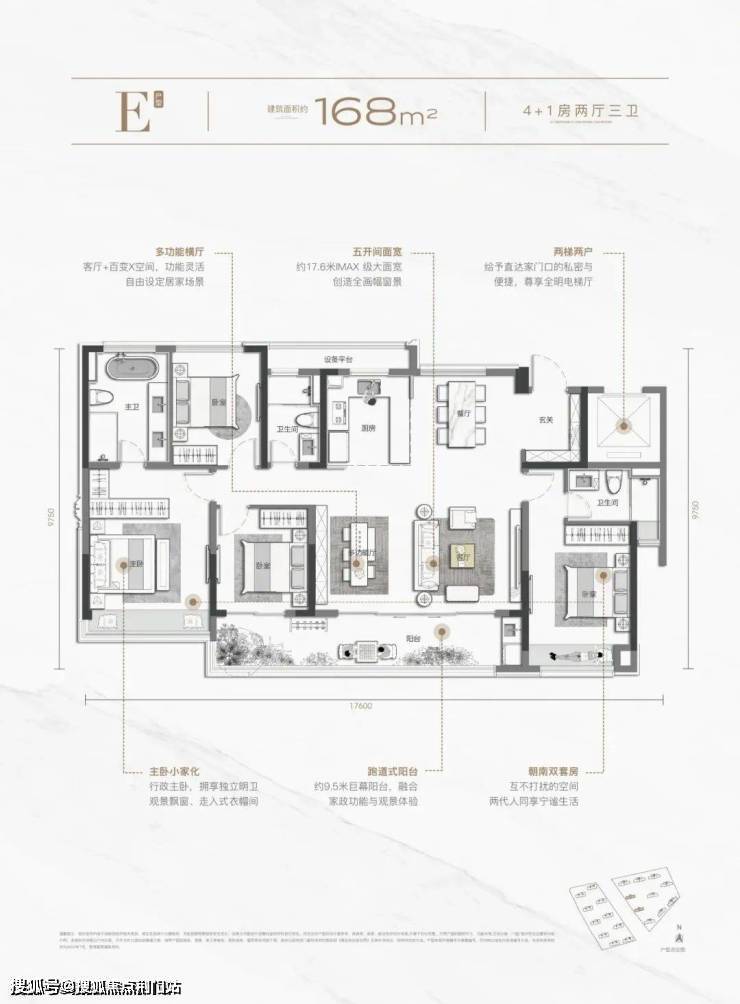 就以刚刚亮相的168样板房来说,无论是尺度或者是格局,都“强大”到离谱! 约17.6米IMAX级面宽,同级鲜有对手,五开间朝南,创造全画幅窗景。 超55㎡LDKB家族式社交巨厅 ,随时举办一场『圆桌盛宴』,尽显待客的气度与排场。