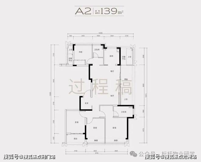 2)139方A1南厅户型,4房2厅2卫,得房率86%