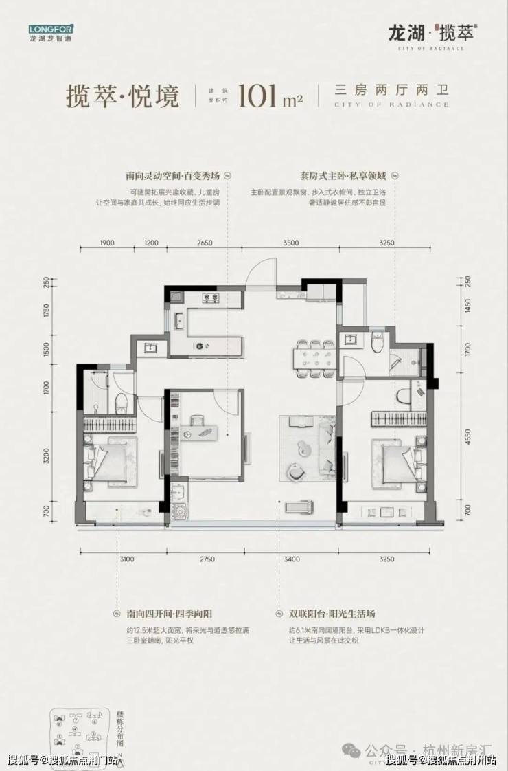 据了解,观潮揽萃府由8幢高层住宅组成,总共375套房源,定位偏向刚需首改,主力面积100㎡-139㎡。项目配备超90米奢阔门庭、九大会所、板块首创篮球/羽毛球会所,创新设计垂直森林水院,