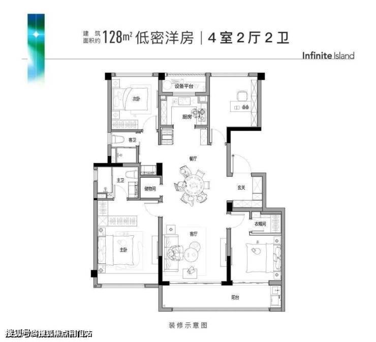 建面约128㎡的四房两卫,则是带独立玄关+储物间的四叶草,阳台开间约7米,住下三孩家庭都能绰绰有余。