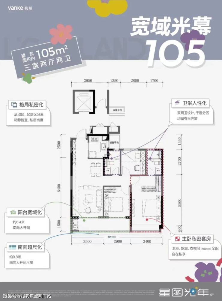 仅剩的30套建筑面积约105㎡轻奢宽境三房,以年轻时尚宜居的理念打造,居住尺度更加舒展。