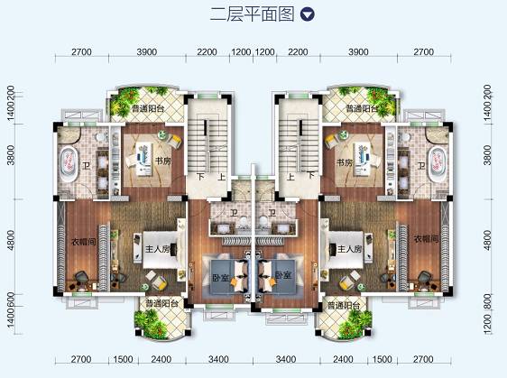 5房2厅4卫, 双景阔厅,南北通透,布局宽敞大气