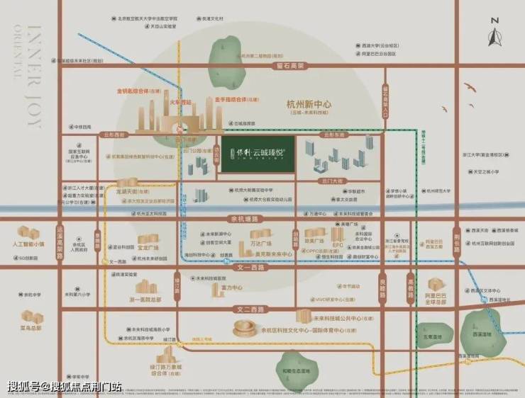 ② 商业资源:项目直线约800米就是杭州西站枢纽,其中规划的 云城综合体,总用地110公顷,由南北共8幢超200米以上超高楼组成。