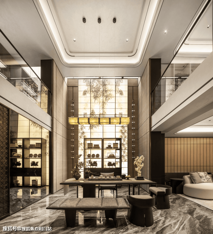 作为银湖首个宋风美学园墅,项目归家大门宽约32米,以60吨太行山老石皮砌筑背景墙,配以日本进口罗汉松,从第一眼便奠定精致奢华的基调。