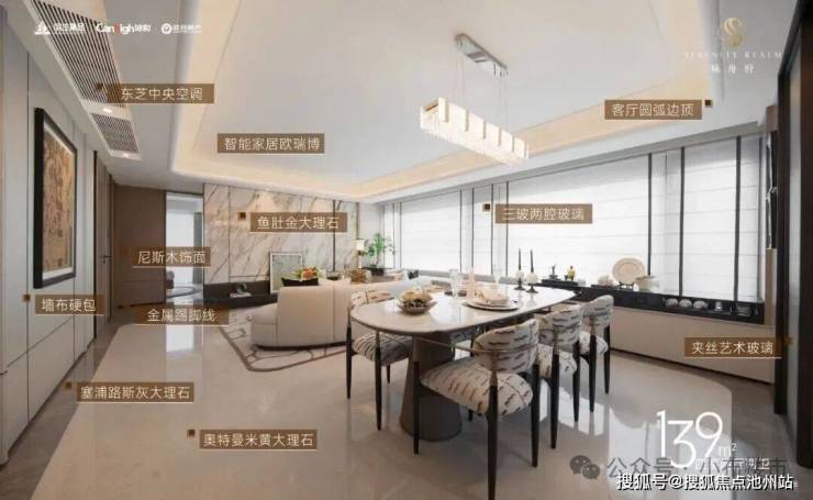 以“美学、场域、意境”为核心,打造深色铝板与玻璃幕墙结合的“游艇级流线”立面,3.15米层高远超市场标准,通透感与生俱来。122-173㎡全生命周期户型矩阵,明星139㎡四房实现四开间朝南,173㎡奢阔户型配备7.2米横厅与双阳台。5000元/㎡精装标准搭载日立中央空调、博世地暖等国际一线品牌,细节处见品质。