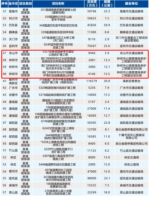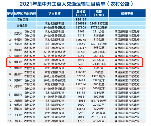 农村公路项目包15个,总里程共2245公里,总投资69.7亿元;