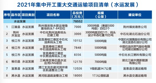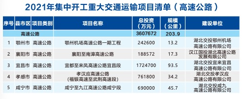 1月22日,湖北举行2021年全省重大交通运输项目集中开工暨多式联运示范工程续建项目开工活动,本次集中开工交通运输重大项目(包)共111个,总投资736亿元。活动以视频会议的形式举行,主会场设在武汉,设荆州、宜昌、襄阳三个分会场。