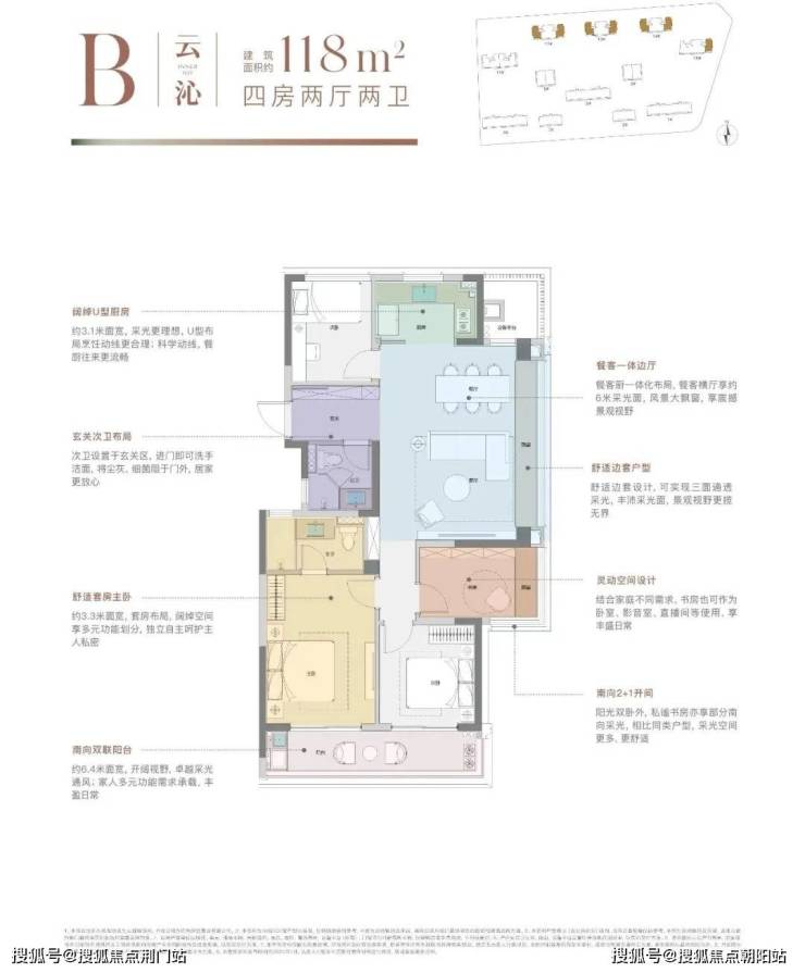 建面约118㎡户型,2+1开间朝南+边套大横厅,本已足够打动人,却仍内藏小心思。