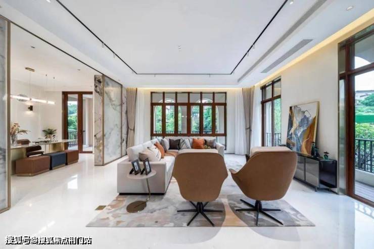 我们在建面约288方的边套,现场感受一楼空间的3面采光,采光和通风好到爆炸;透过客餐厅的大玻璃窗往外看,秋日暖阳下,秋叶色彩斑斓,宛若一幅多彩油画。每一扇窗,都美的让人移不开眼睛。