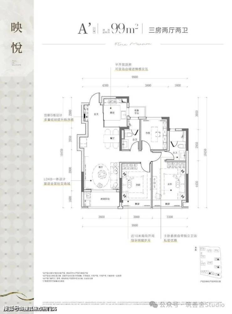 项目总建面约9万方,规划11幢12-16层纯高层,采用"南低北高"的错落布局,建筑限高50米,楼幢间距预计较为开阔,错落式布局,打造了两大主题园林空间。推出建面约99㎡与113㎡精致三居室,以及建面约108㎡、120㎡、128㎡、139㎡宽敞四居室,满足不同家庭需求。
