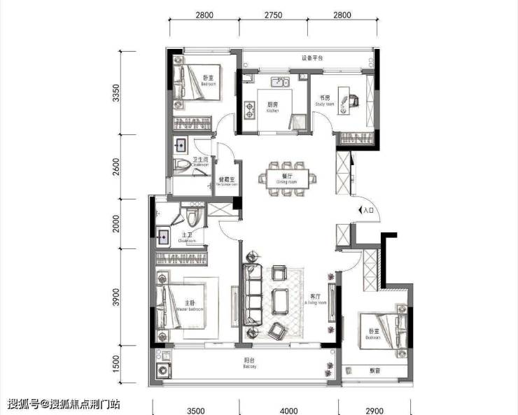 建面约130㎡的四房两厅两卫户型,尺度更加舒适。