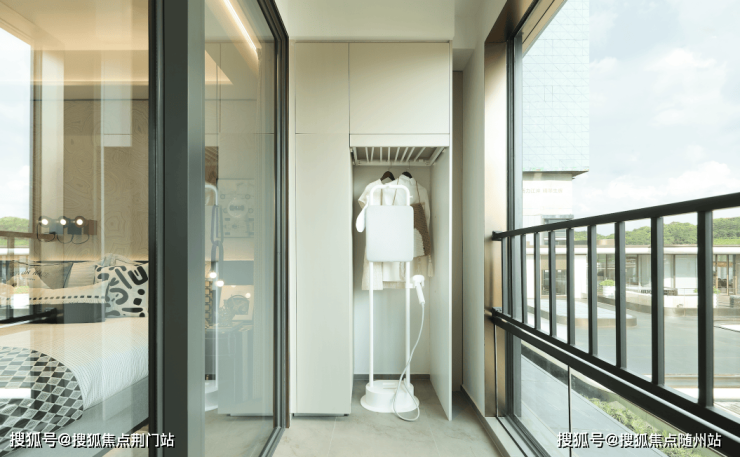 公建化的立面,四面铝板搭配大面积玻璃,阳台统一封包,底层的浅色天然石材还被打磨出弧线,脱去厚重外壳,轻盈洒脱。项目西侧直线约800米就是钱塘江,春来晴翠也在园区里编织了一幅山水画卷。