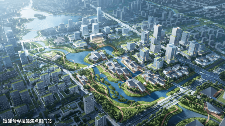江海之城的规划有一点和钱二很像,钱二是由三堡五堡七堡一个个TOD串联起来的,江海之城也一路是「TOD+公园城市」的横向轴带,青六中路站等4组TOD集群,拱卫着板块核心的河印观翠湾。