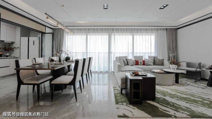 外立面采用金属铝板和玻璃,配以部分的石材,通过对称的构图、水平舒展的横向线条、轻巧飘逸的屋面挑檐以及典雅的“高级灰”颜色搭配,有效提高了建筑层次感、艺术感。金属铝板、玻璃以及灰色石材等材质的合理运用让建筑更显现代性,包容了完美的社区规划与各式配置,拥气度,尽风尚。