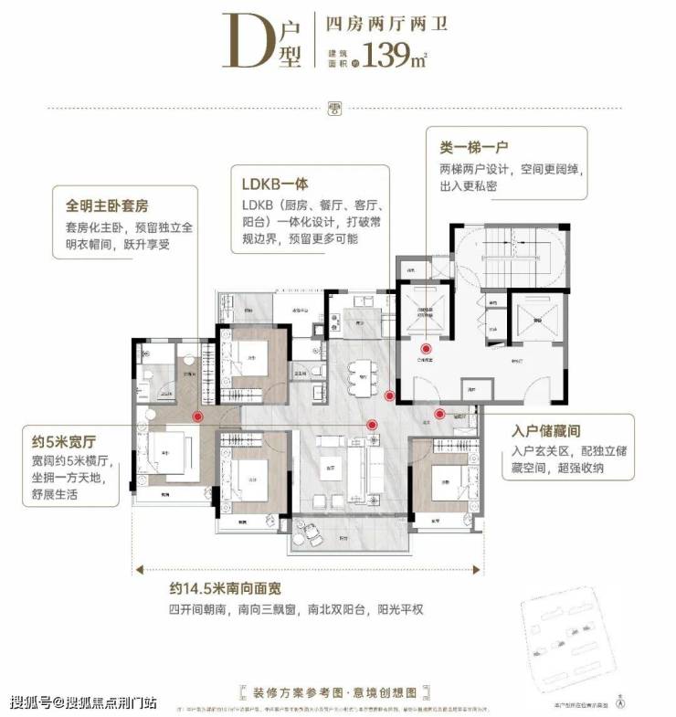 建面139㎡户型,客厅超5米的南向四面宽,大开间短进深设计,主卧带L型转角飘窗,独立全明衣帽间,尊贵感强。建面约160㎡户型南向超15m,四房三卫格局,L型步入衣帽间,更好的私密感。