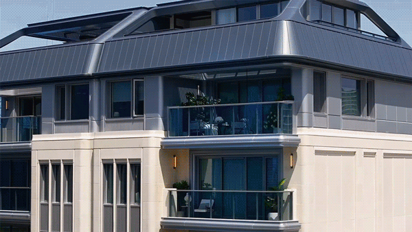 二是屋顶创新,上叠产品创新性地采用了类孟莎顶设计,形成实用且私密的露台区域,有效提升了屋顶空间的利用率。