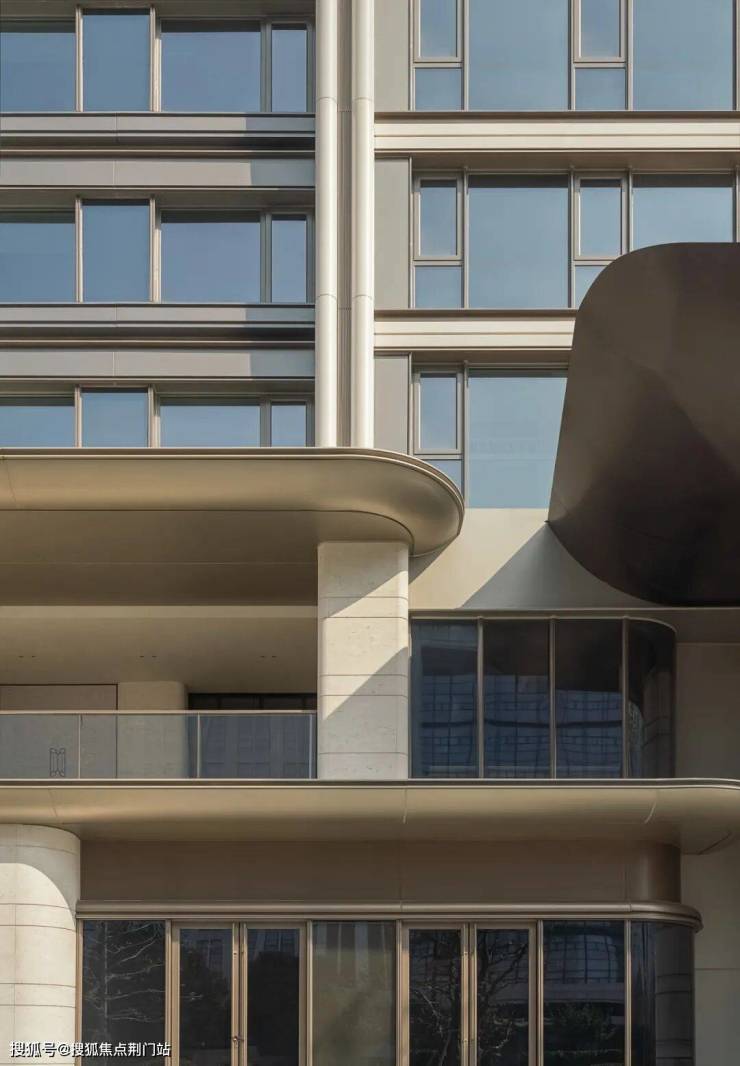 建筑立面选材兼顾未来感与品质感,采用Low-E中空玻璃保障通透视野,搭配贝金米黄铝板,以现代工艺勾勒简洁利落的线条;局部嵌入深灰色金属格栅与科技感灯带,既强化层次,又呼应未来科技城的科创基因,实现“未来形态,质感表达”。