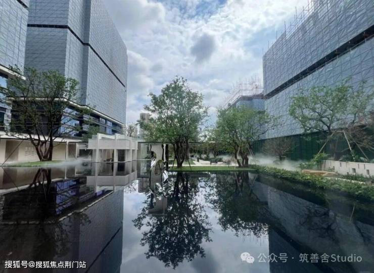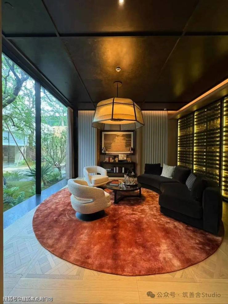 深植传统园林智慧,安璞构建起“行、望、居、游”景观体系。以核芯水院聚合庭、院、林、屿、亭、泉六重诗意场景;围合布局中心庭园,将远处林冠、近处波光引入室内,实现户户有景,窗窗成画的景观平权。