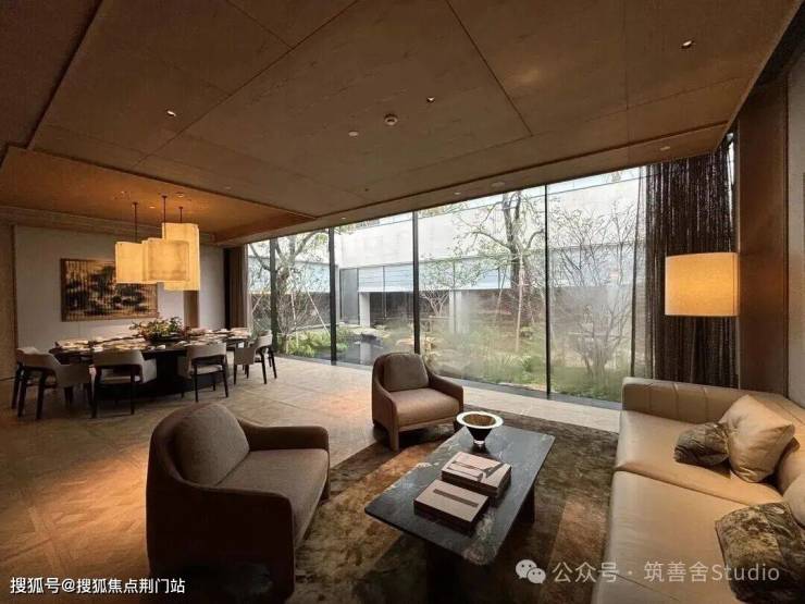 巧妙融合风雨连廊、架空层与下层式庭院等设计,模糊自然与建筑的界限,同时借鉴中式框景、借景、对景的精髓,打造出园中有园、移步换景的雅致意境。