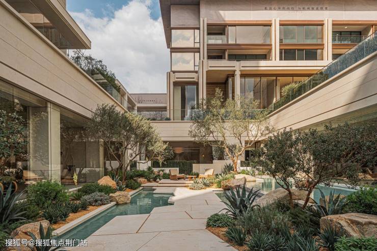 这个极简主义地中海风的改善住宅,有超2000方下沉庭院会所。