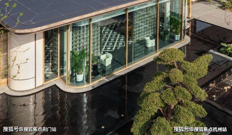 立面方面,汲取现代轻奢法式的白金美学灵感,叠加大面玻璃,打造出光影灵动的对称式金色画框立面。