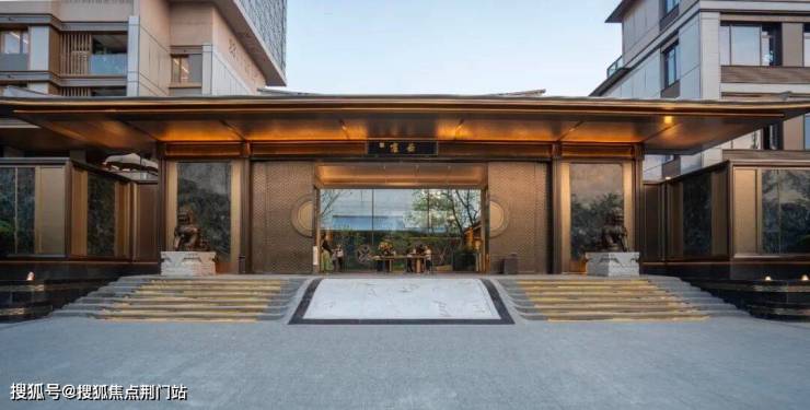 景墙还别出心裁地采用高低墙的设计,立体而饱满。两侧高约2米(含基座)、重约600斤铜狮镇宅,据说这是建发千万级顶豪才有的「压箱宝」。