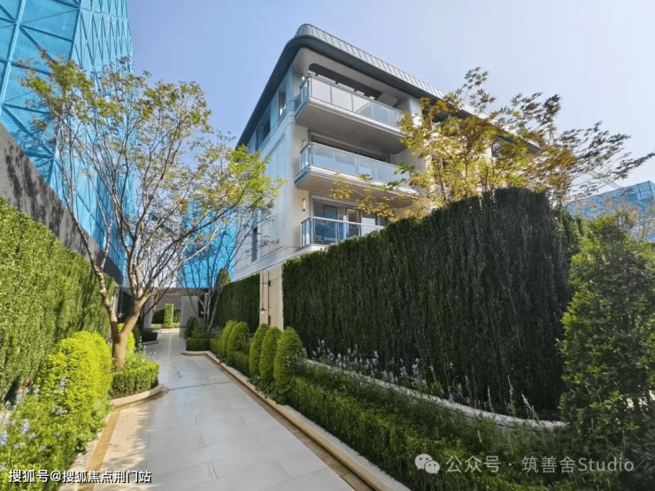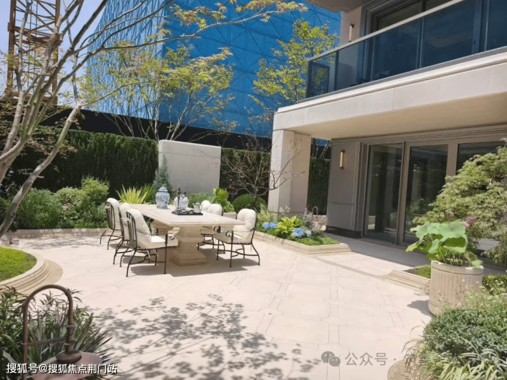 中庭景观借鉴法式园林的对称美学,构筑中轴景观。