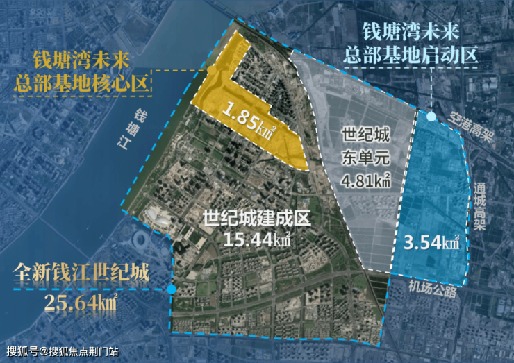 毗邻钱江世纪城的外溢板块,宁围以机场快速路为界,南北向被一分为二。机场快速路以北,就是近几年被我们熟知的钱塘湾未来总部基地。