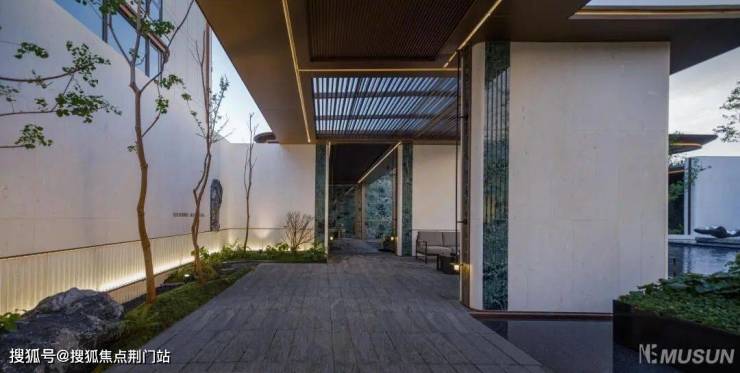 穿过归家大堂,入眼的便是大片的镜面摩登水院,涌泉叠水,高低错落、动静相宜。景观设计团队更是在水院里做了一个下沉式卡座,未来业主可以在这里闲坐观景,与三五好友可以畅聊天地。